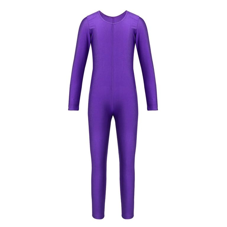 Dpois Kids Girls Long Sleeve Unitard Leotard Jumpsuit Full Length Bodysuit Purple 11 12 Walmart Com